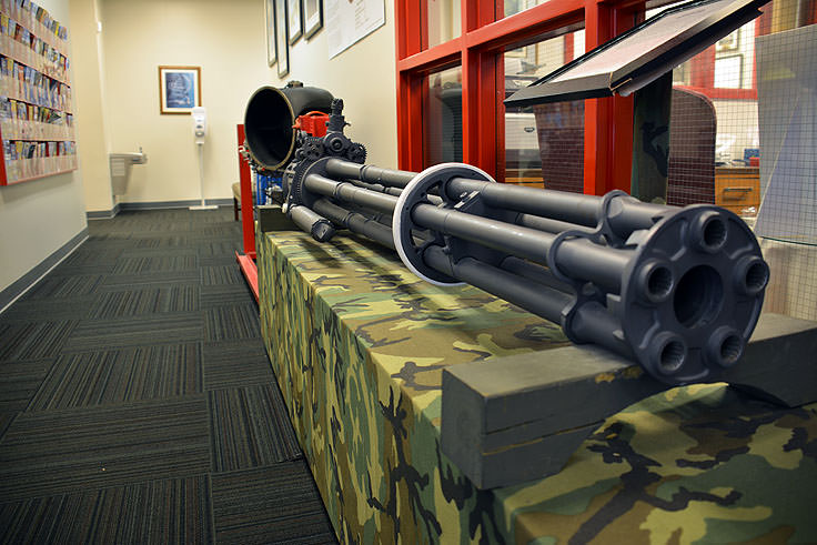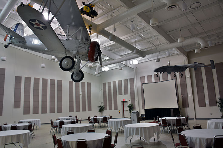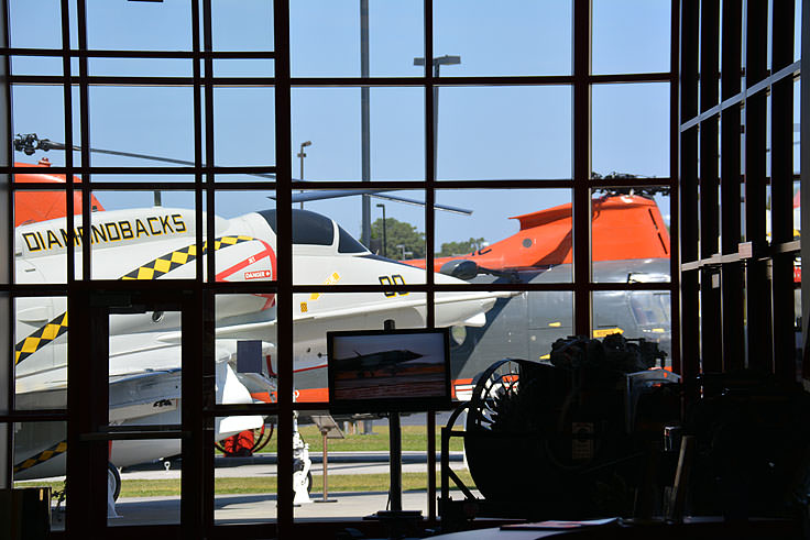Overhead inside the center, visitors can marvel at the F4B-3, a Boeing manufactured fighter plane that was constructed in the 1930s, and outside, aviation fans can admire the collection of military aircraft and fighter jets that are placed along the grounds. Sample planes include the A-4 "Skyhawk," a light attack plane that was used during the Vietnam War, and the F9F-6P, a small and stealthy plane that was used for photo reconnaissance missions in the 1950s.
